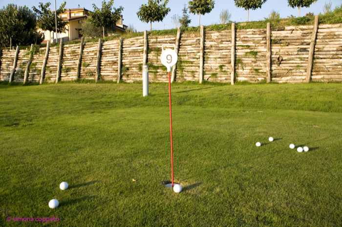 Il percorso, lungo complessivamente 3.700 metri, par 62, è dotato di doppie partenze per ciascuna buca, al fine di differenziare le prime nove dalle seconde e rendere dunque più vario, completo e interessante il gioco. Alle spalle della club house, in un’area separata rispetto al percorso, è situato il campo pratica, che ripropone le condizioni di gioco del percorso, favorendo le fasi di allenamento, con target disposti da 50 a 200 metri. È dotato di due serie di battitori scoperti e di una serie di postazioni coperte, per poter praticare anche in condizioni climatiche avverse. Sia le postazioni di battuta sia l’area del campo pratica sono illuminate per la pratica in notturna. Il driving range è completato da un’area di pratica per il gioco corto, composta da un green e da una zona per gli approcci munita di bunker. Nell’area a verde situata alle spalle della club house, in prossimità del driving range, è situata un’altra zona di allenamento per il gioco corto di circa 450 metri quadrati, con putting green a nove buche, anche questa illuminata.
