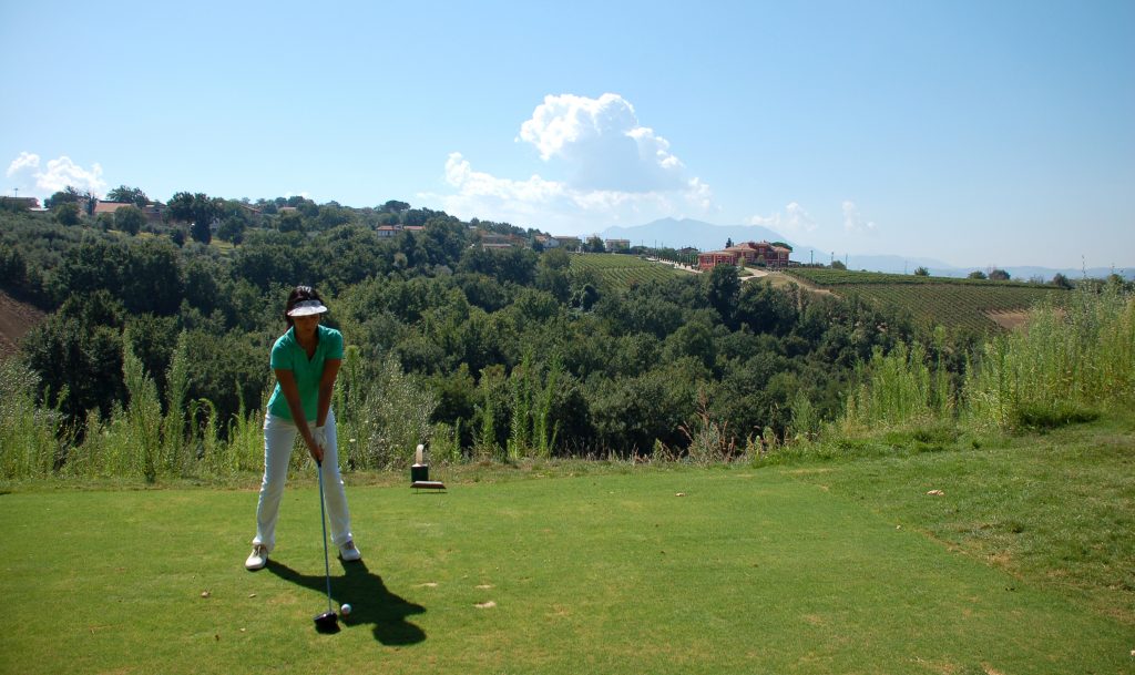 La famiglia Mastroberardino lo ha voluto in sintonia con il contesto naturale, paesaggistico e produttivo dei colli avellinesi. Buche incastonate come gemme all’interno delle aree, a vigneto e ad oliveto, si combinano con altre totalmente immerse nel paesaggio, creando un’alternanza di condizioni ambientali e di gioco di grande effetto.